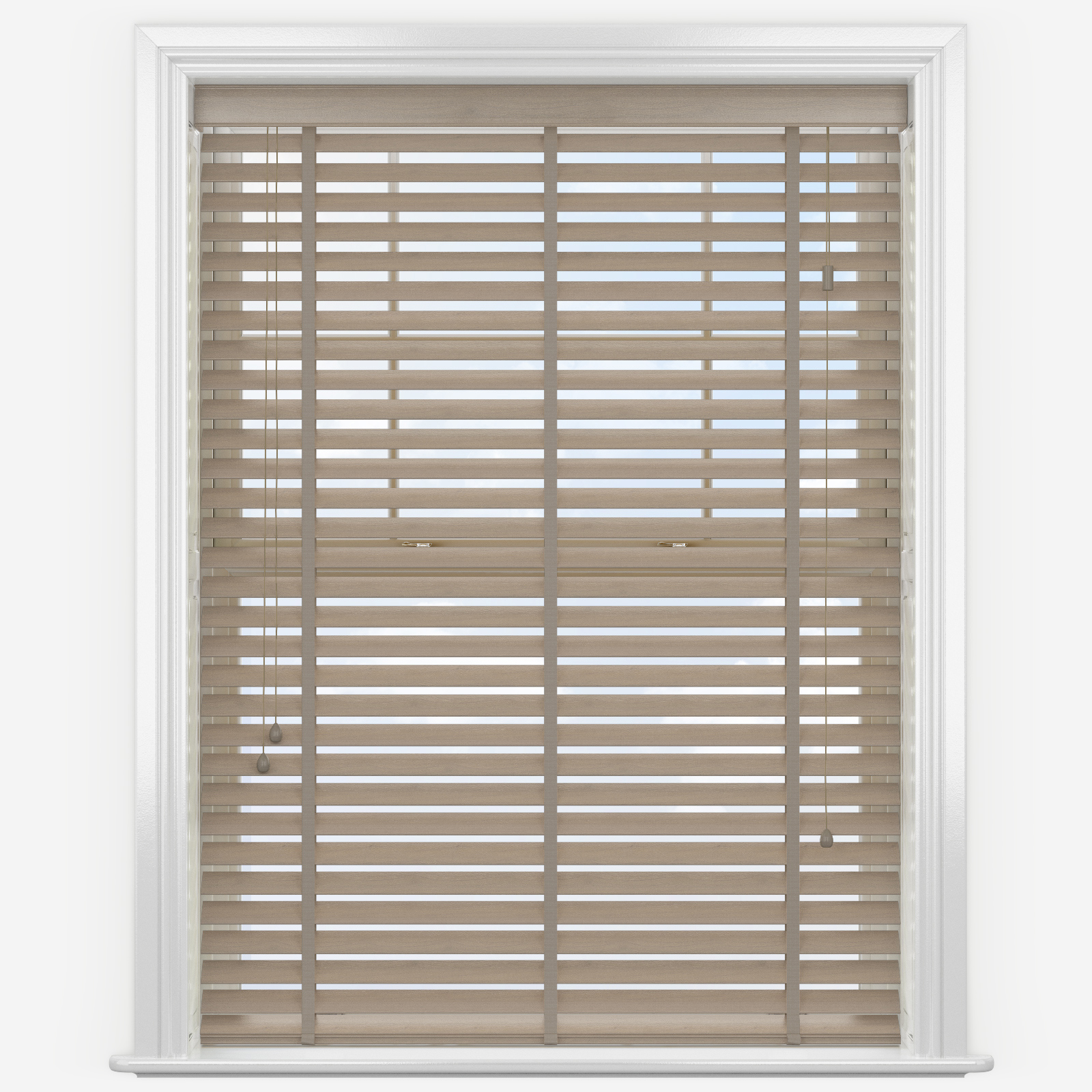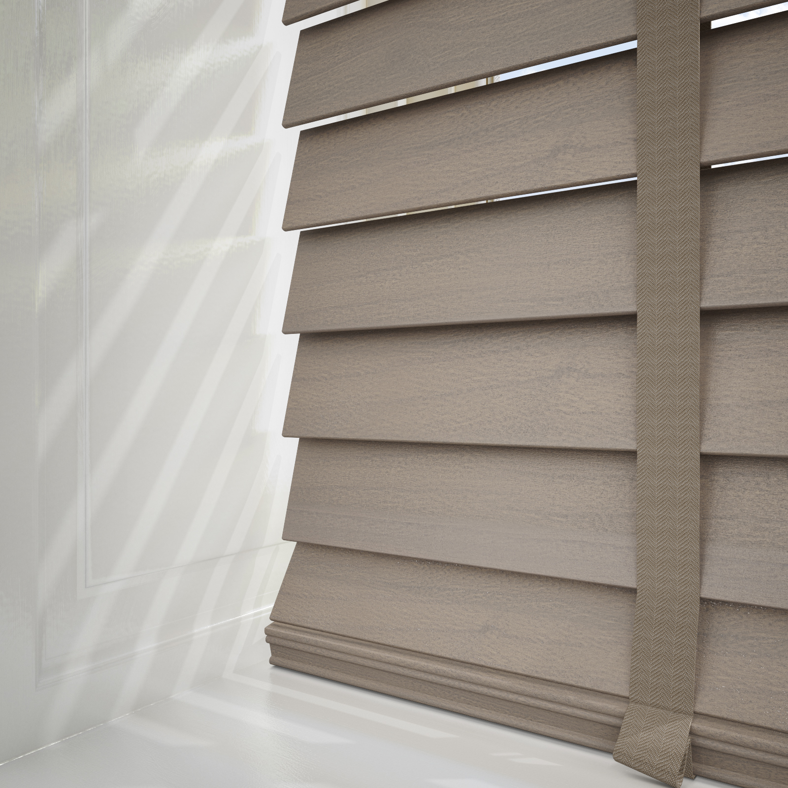 Add effortless elegance to your windows with this Designer Smoke Grey With Tapes Wooden Venetian Blind.
