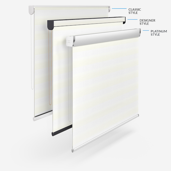 Touched By Design Nova Warm White Embrace the timeless elegance of classic day & night blinds or enhance your décor with our stylish upgrade options. The Designer style features a refined touch of your chosen fabric on the headrail and a sleek bottom bar, with three chic colour options to choose from. For a more luxurious option, the Platinum upgrade offers six hardware colours, providing a truly personalised finish. Whichever you choose, all options promise to bring a stylish and sophisticated touch to any room!