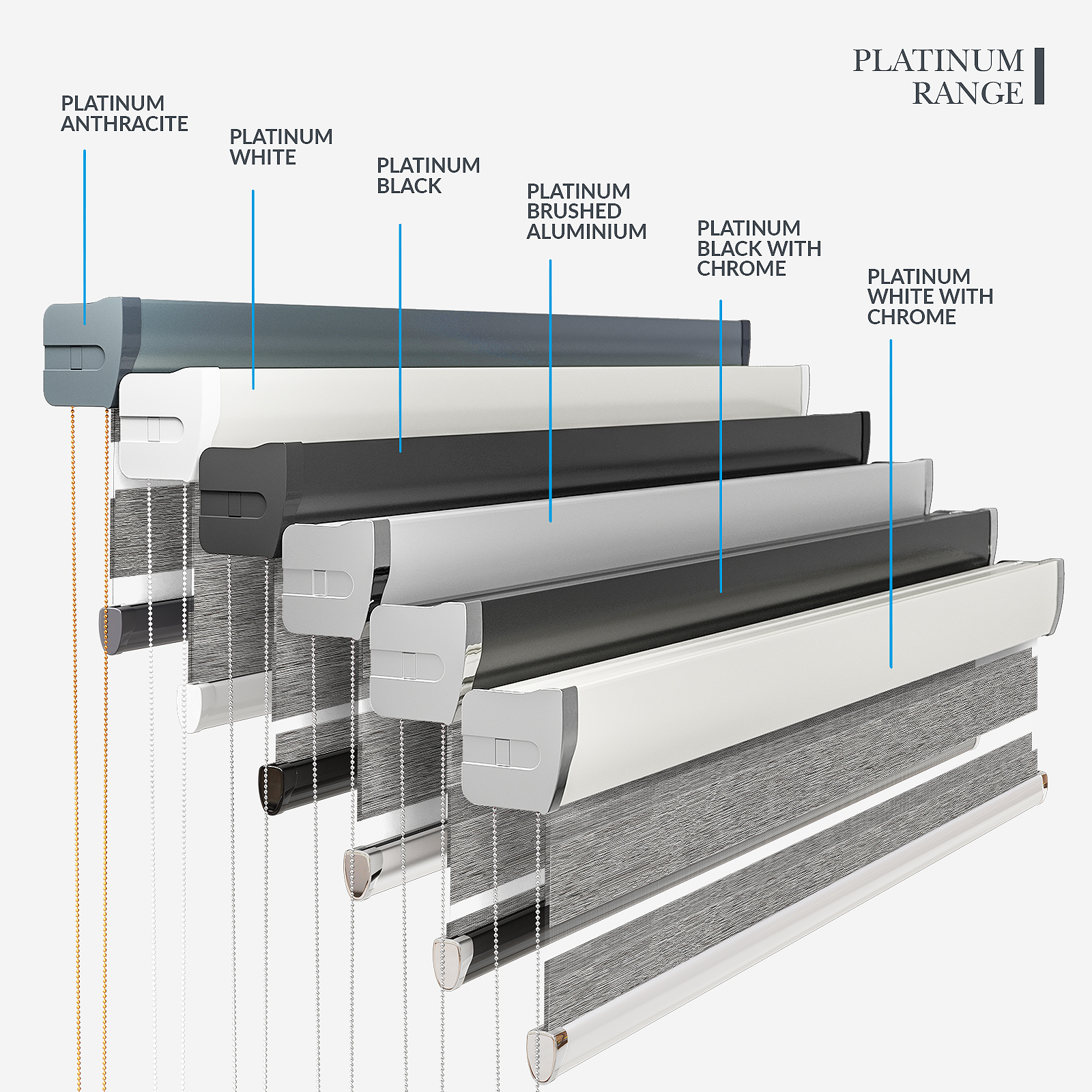 Embrace the timeless elegance of classic day & night blinds or enhance your décor with our stylish upgrade options. The Designer style features a refined touch of your chosen fabric on the headrail and a sleek bottom bar, with three chic colour options to choose from. For a more luxurious option, the Platinum upgrade offers six hardware colours, providing a truly personalised finish. Whichever you choose, all options promise to bring a stylish and sophisticated touch to any room!