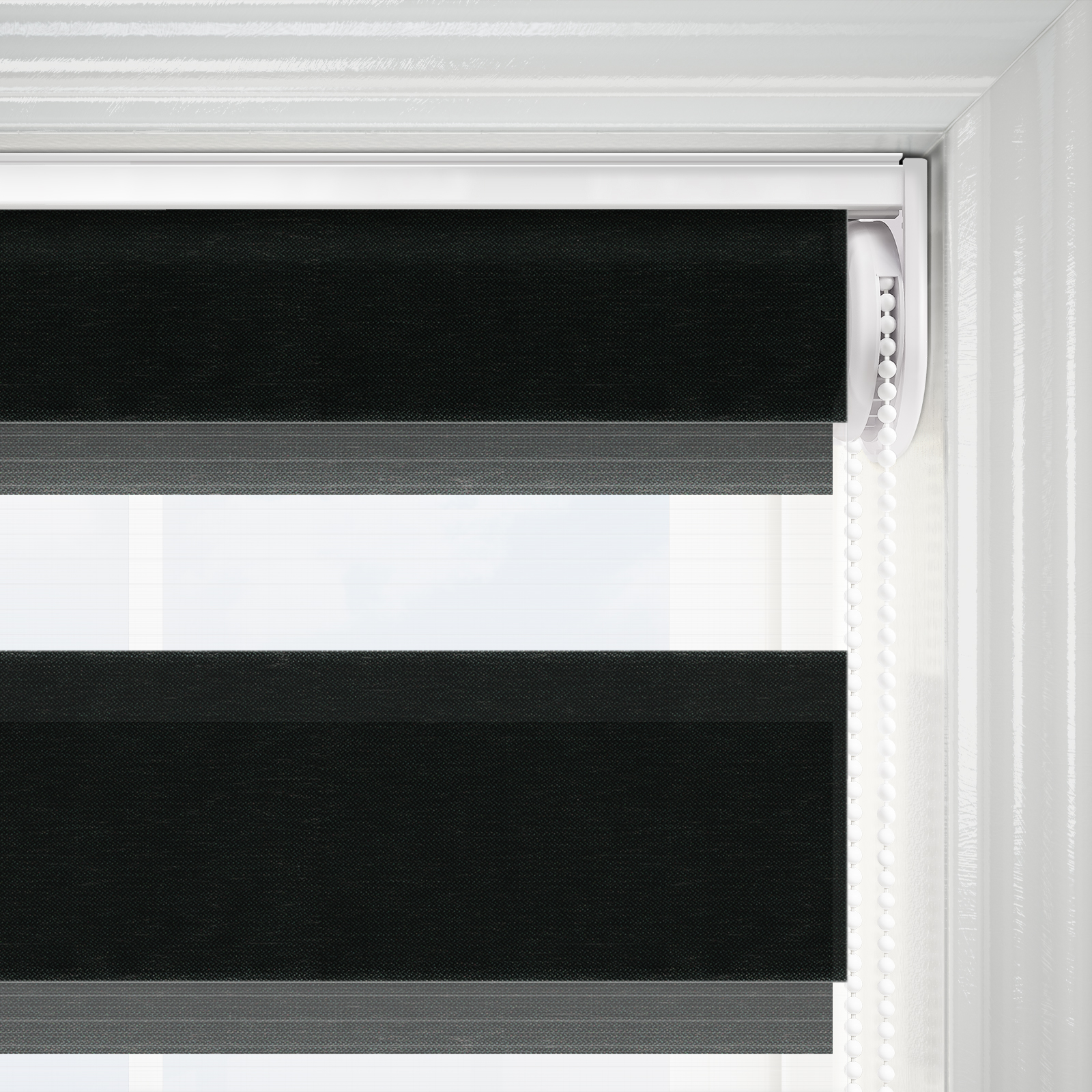 Whether you're looking to let in the light or shut down for sleep, this blind allows you to do so with its inventive design. As you roll it down, alternating strips of fabric slide against one-another to switch between a block of colour and a stylish set of stripes. The deep black highlights the futuristic style of the blind and is certain to make your windows stand out.