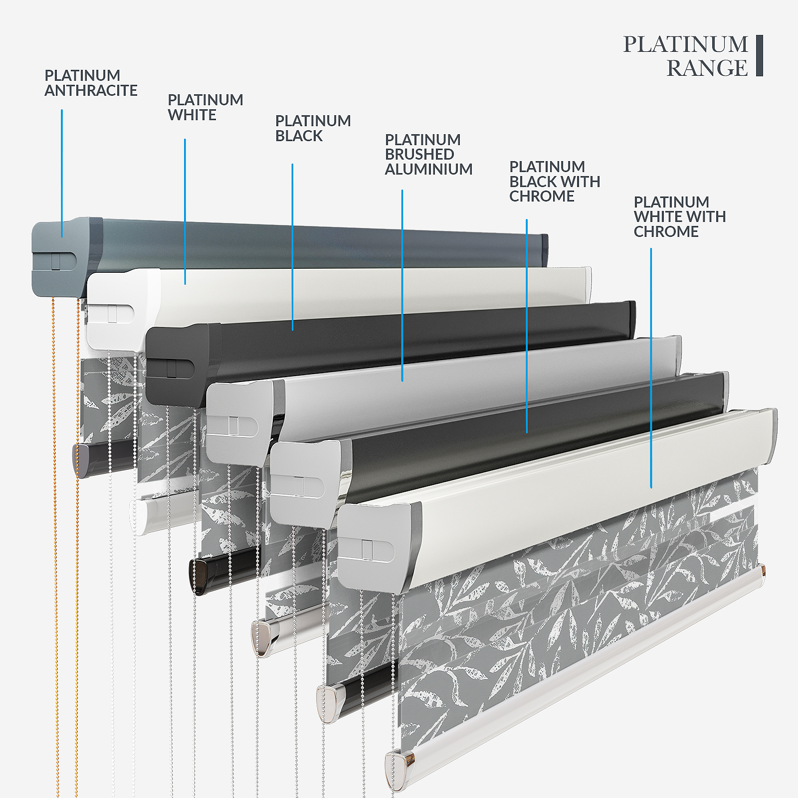 Embrace the timeless elegance of classic day & night blinds or enhance your décor with our stylish upgrade options. The Designer style features a refined touch of your chosen fabric on the headrail and a sleek bottom bar, with three chic colour options to choose from. For a more luxurious option, the Platinum upgrade offers six hardware colours, providing a truly personalised finish. Whichever you choose, all options promise to bring a stylish and sophisticated touch to any room!