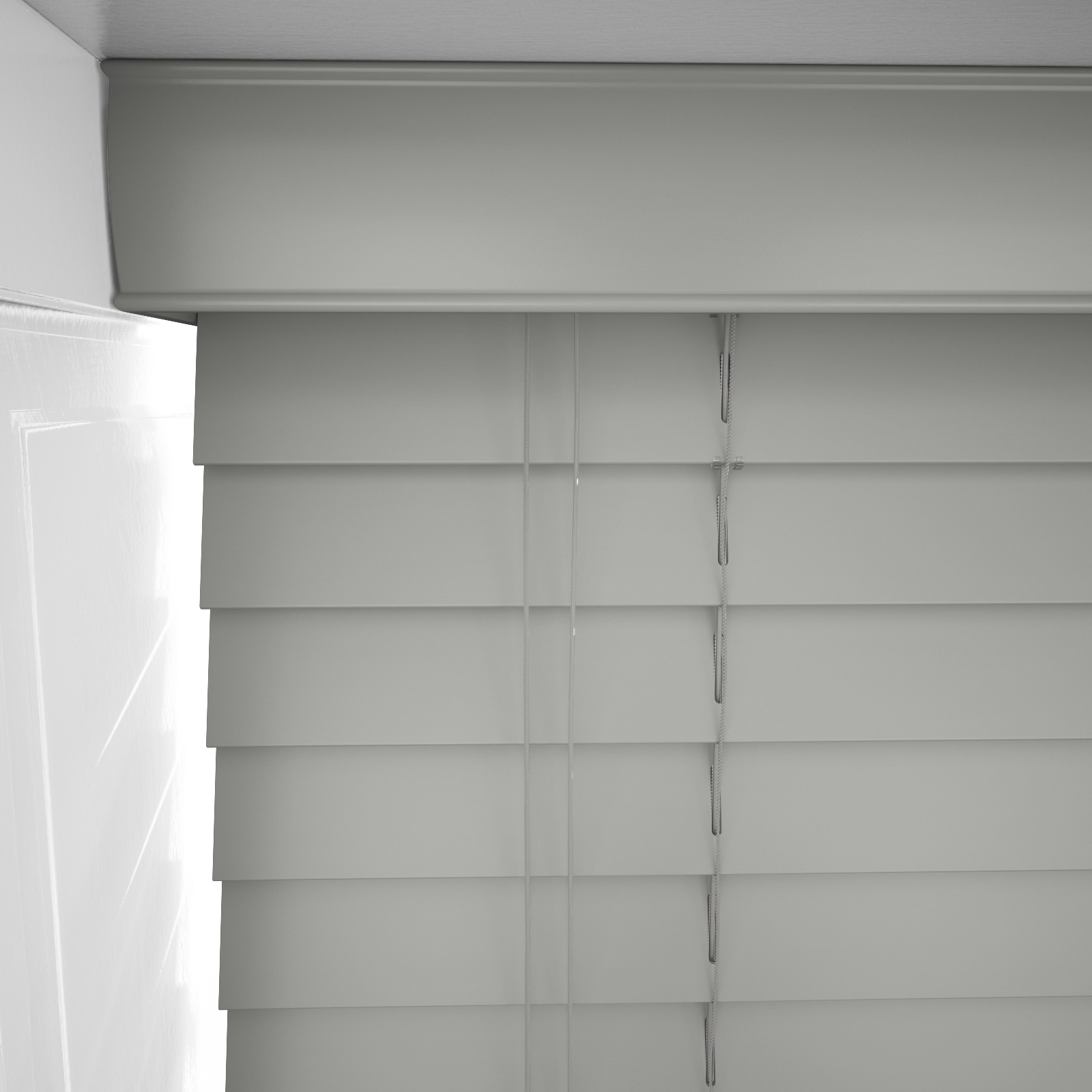 Finished in a warm contemporary grey and shaped with a subtle lip on the edge of each slat, this calming faux wood blind offers classic style with a modern twist. Equally at home in both rustic and minimalist decors.