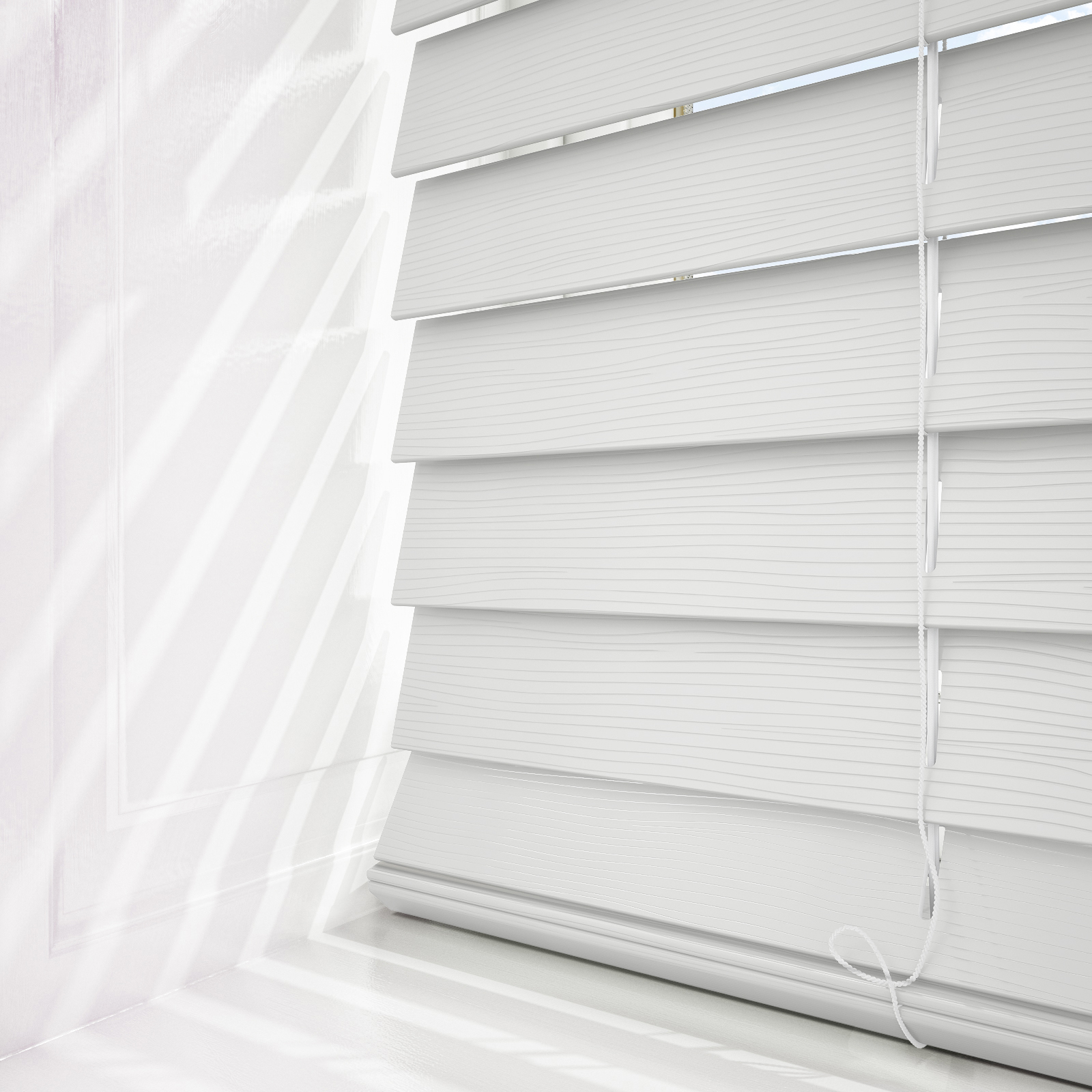 This beautiful faux wood blind is certain to revitalize your home with its stunning bright white finish and fine grain effect. It effortlessly provides the impression and feel of a natural wood blind, while providing the benefits that only faux wood can.