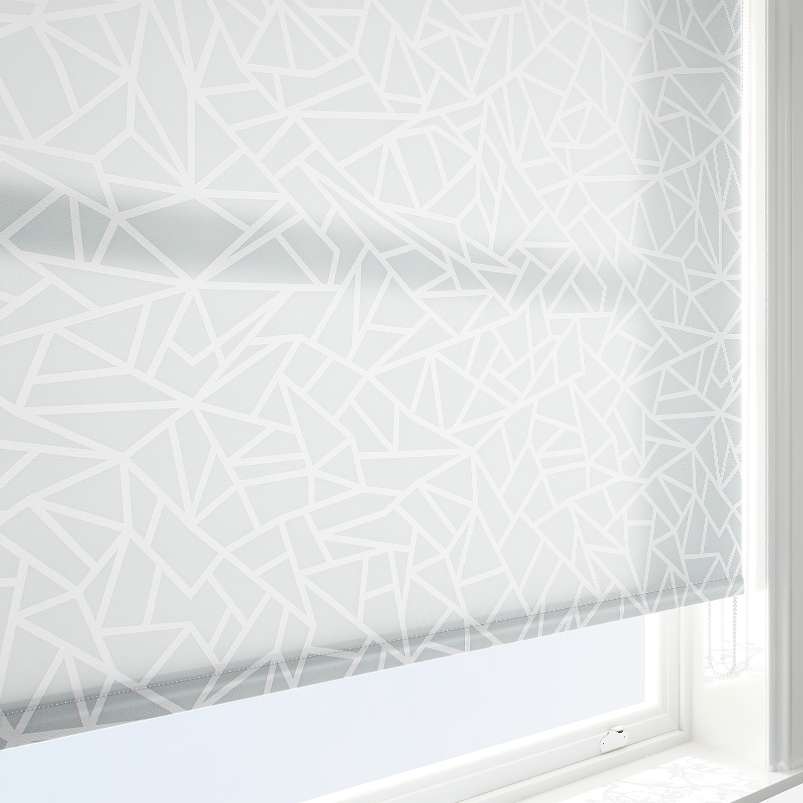 This light grey roller blind showcases an appealing geometric pattern, providing your room and your interior look with versatile style.