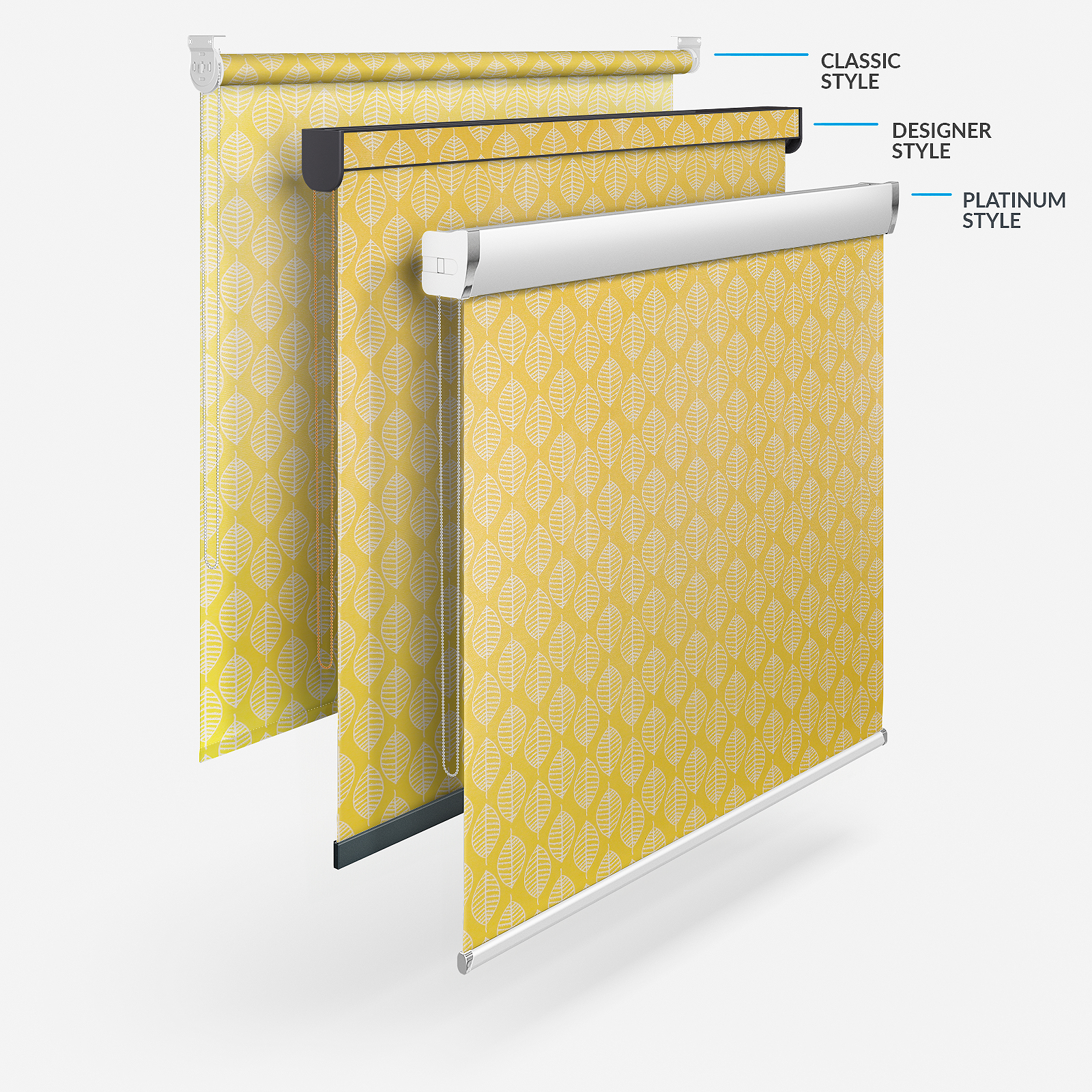 Offering a splash of vibrant yellow, this blind features a modern scandi take of beautiful leaves. Coordinating with a vast number of colours including crisp whites, opulent blacks and fashionable greens.