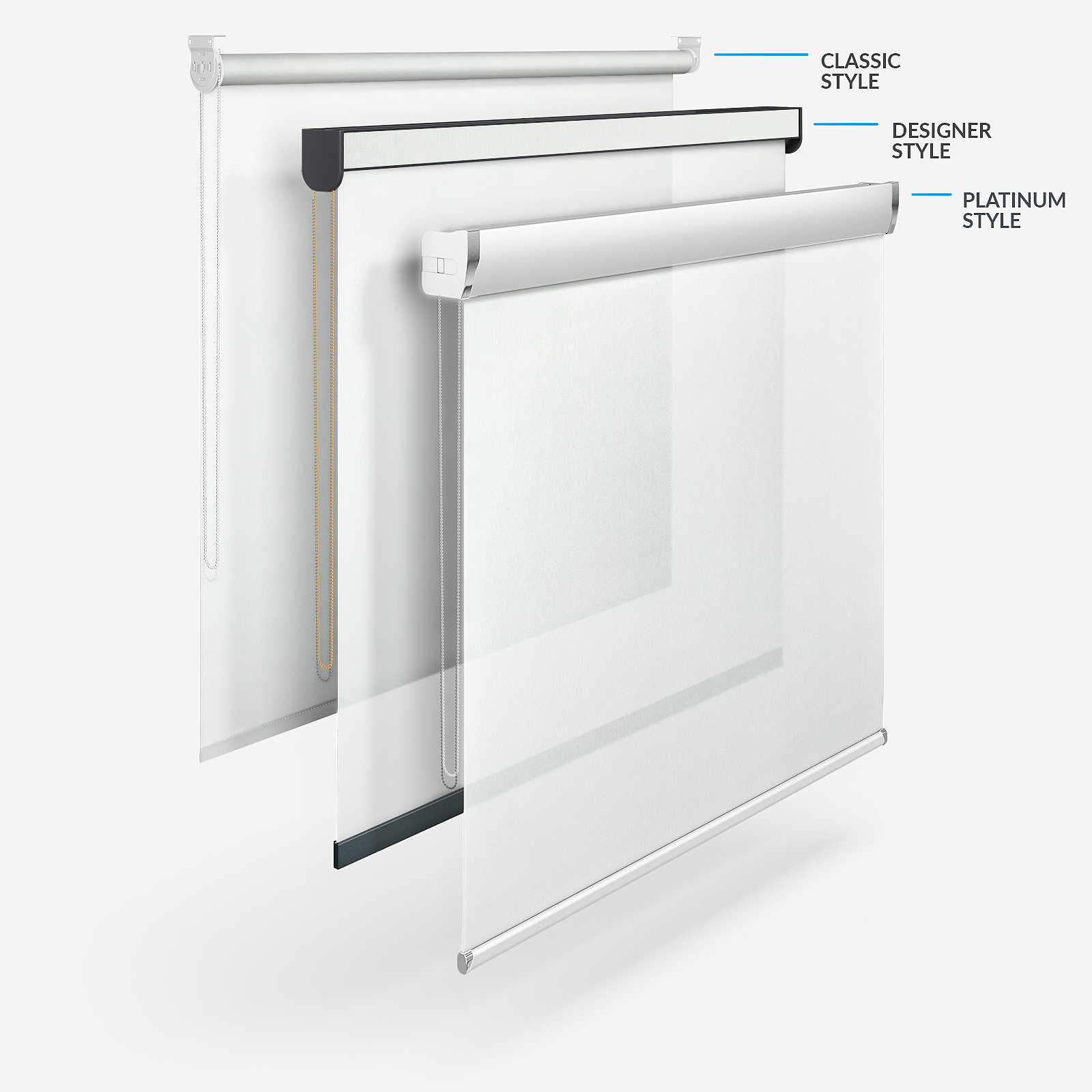 While you can enjoy the timeless style of classic roller blinds, there are different styles available with Blinds Direct. The Designer style adds a little of your chosen fabric to the stylish headrail and a chic bottom bar while the Designer No Drill option captures the same beauty but without the need for drills or screws. Finally, the Platinum option gives the flexibility to add a fashionable finish to any room!