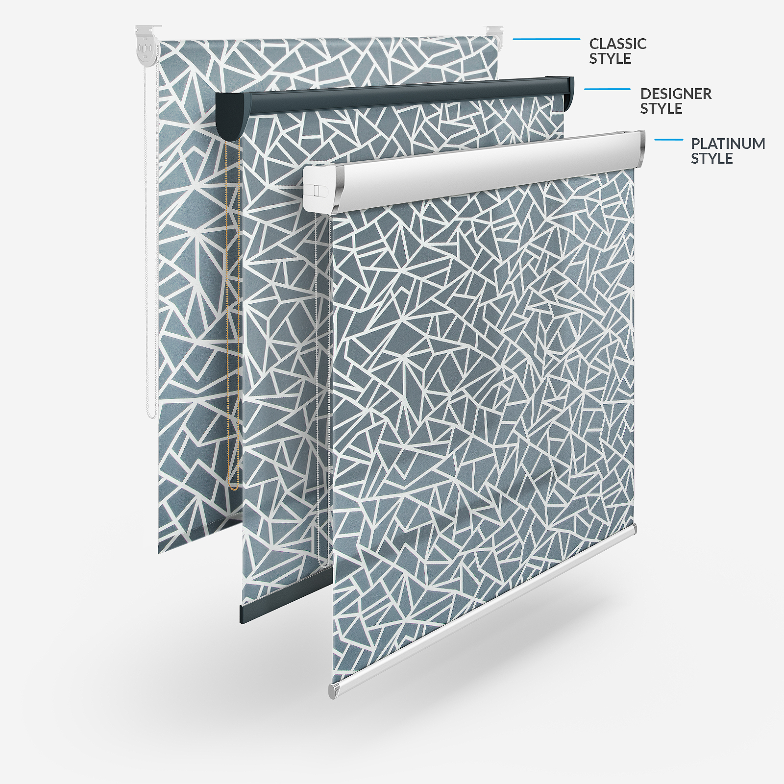 Beyond the flexibility to have your blinds made to your exact specifications, you can also pick from four different styles! There is the time-tested Classic style, the fashionable Designer style that helps you maximise your chosen fabric in the headrail and the chic, sleek Platinum style. The fourth option is the Designer No Drill style. This combines the beauty of a Designer roller blind without the need for drills or screws!