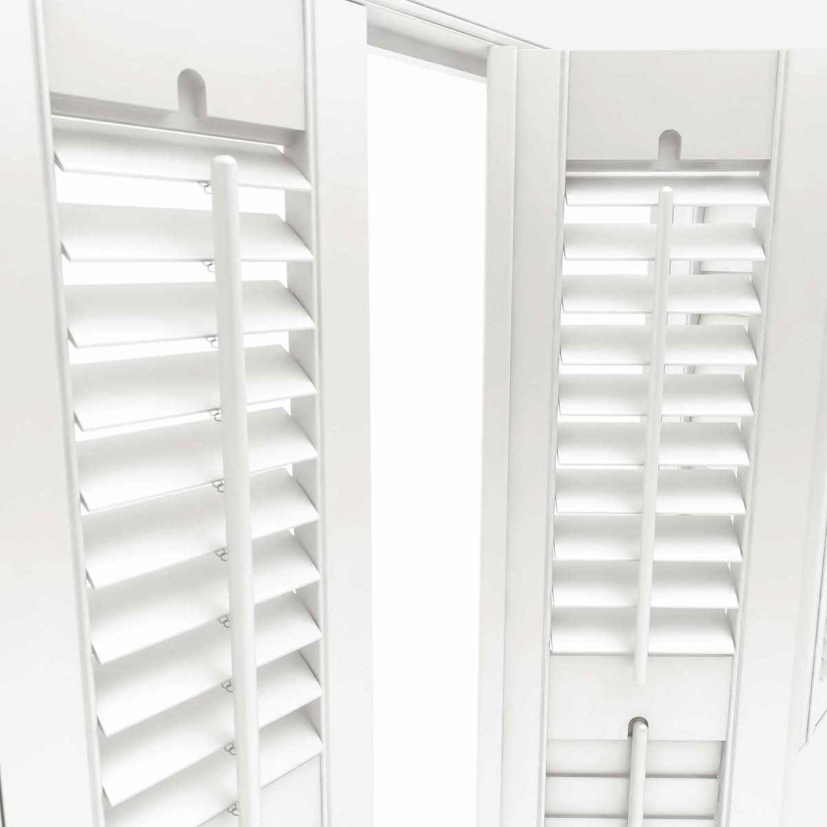 Discover the style and sophistication of a wooden shutter with the durability and versatility of PVC with our WoodLux Silk White Shutter Blind.