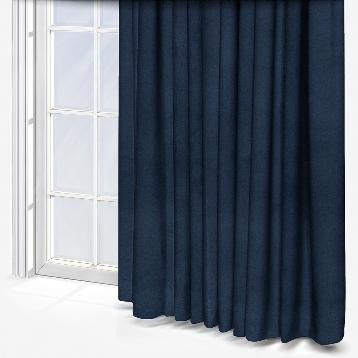 Make your room a sanctuary with this made to measure Touched By Design Manhattan Prussian Blue Curtain. Benefit from the practical advantages of a high quality curtain, including light control, privacy, warmth and thermal efficiency. Along with this functionality comes beauty and style, making your interior a major feature of the space. The dark mysterious blue of this curtain will help create a calming and rejuvenating space to relax. Combined with luxurious velvet and trending plain design, it is guaranteed to make a fashionable statement in any home. Here at Blinds Direct, we are so proud to hand-make all of our made to measure products from our dedicated premises in West Yorkshire. From this facility, our skilled and experienced team of crafters ensure that all products are finished to the high standards that we're known for.
