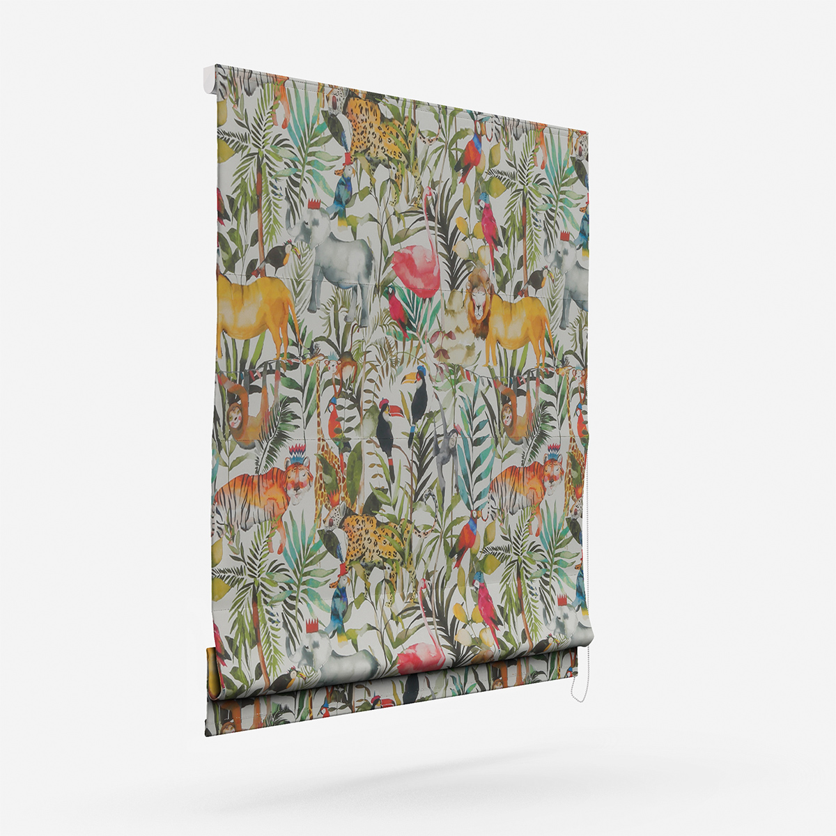 Bright, bold and playful this Roman blind has it all. Showcasing your favourite jungle animals, including lions, tigers, sloths, flamingos and elephants.